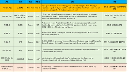 在头颈肿瘤、乳腺癌、肺癌、前列腺癌等多个疾病领域,卡瑞利珠单抗、阿得贝利单抗、吡咯替尼、氟唑帕利、法米替尼、醋酸阿比特龙片(II)等抗肿瘤新药相关研究一共入选了1项简短口头报告、4项壁报展示和1项电子壁报,彰显了九游会医药强劲的研发实力。